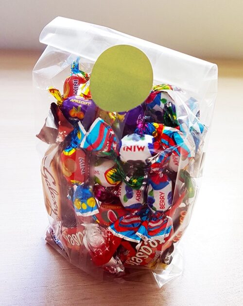 Papírból készült öntapadós korong a tasakok, zacskók gyors, figyelemfelkeltő lezárásása. A csomagolás így sokkal esztétikusabb, mint celluxszal vagy tűzéssel történő lezárás esetén.
