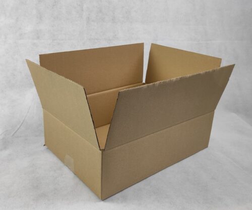 Barna kartondoboz 3 rétegű hullámpapírból.
