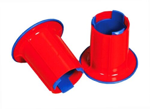 Sztreccsfólia adagoló kézi fóliához a könnyű és egyszerű fóliázás érdekében. Nem sérül meg a kéz, miközben tekeredik le a fólia a dudáról, csévéről. A piros rész beszorul a csévébe, a belső kék rész külön forog.